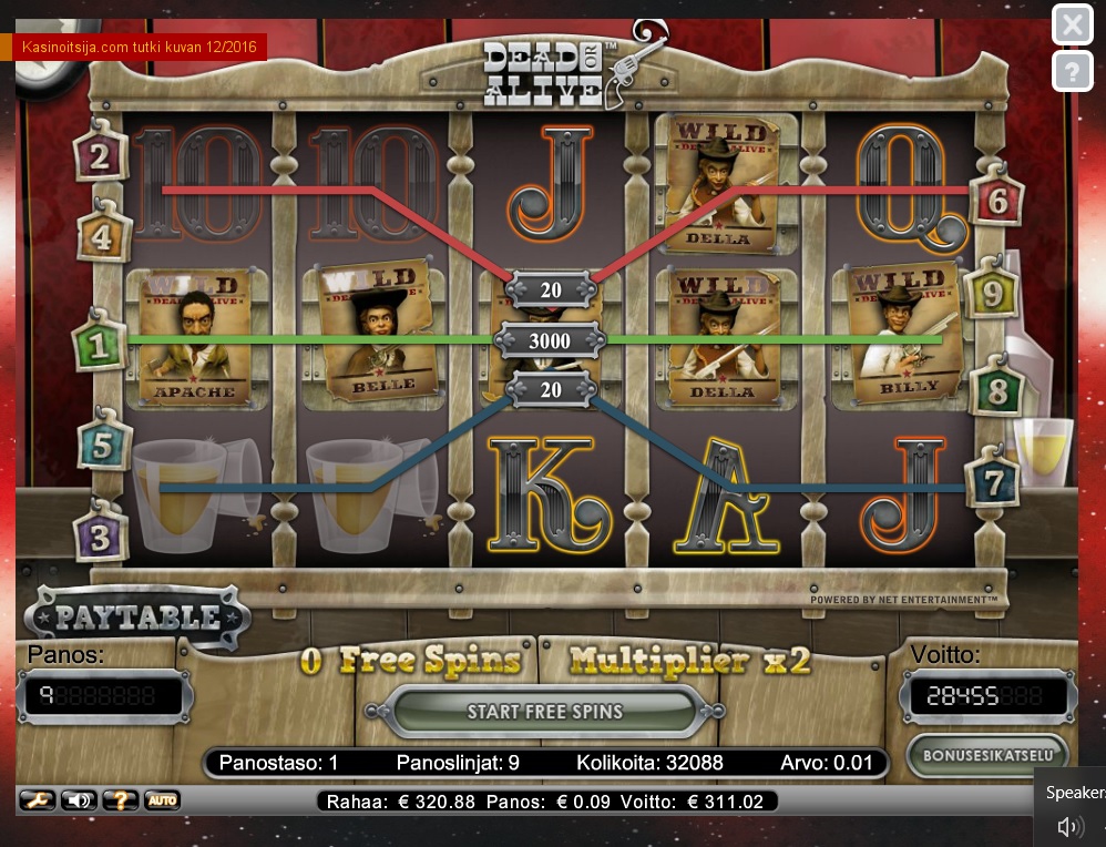 - Dead or Alive (kuvia 11 kpl, voitot 10721€)