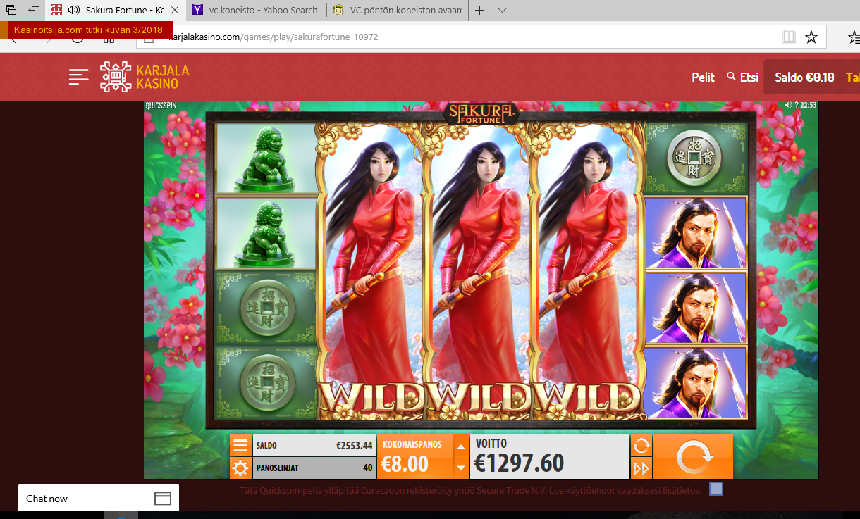 Tadaa! Yllätyitkö, että Sakura Fortune — slottipeli by the way — on yksi suosituimmista peleistä? Se, missä sitä Ison Jättipään mukaan pelataan, näkyy alapuolella. Luetteloa täydennetään aika ajoin. Se ei ole täysin erehtymätön, eikä sitä pidä tulkita niin että kyseisessä pelisaitissa pelataan vain tätä, vaan että tämä on suosituimpia pelejä, joita kyseisen cäshinön pelaajat tykkäävät rämpyttää. Tämän pelin lisäksi supersuosittuja pelejä on reilut kolmisen sataa. Niistä kaksi kolmannesta on kolikkopelejä.