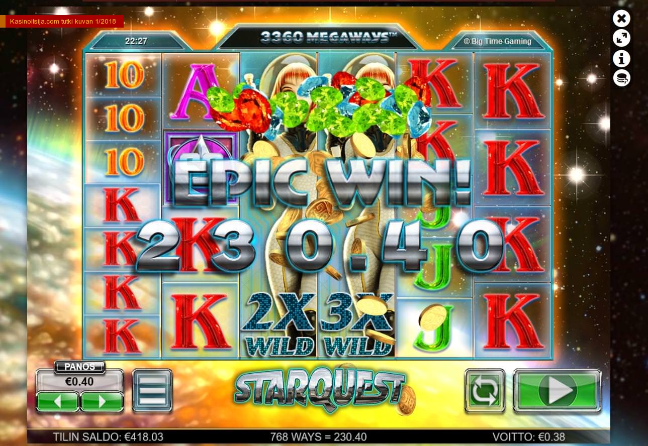 Tadaa! Yllätyitkö, että Starquest — slottipeli by the way — on yksi suosituimmista peleistä? Se, missä Starquestia Ison Jättipään mukaan pelataan, näkyy alapuolella. Luetteloa täydennetään aika ajoin. Se ei ole täysin erehtymätön, eikä sitä pidä tulkita niin että kyseisessä pelisaitissa pelataan vain tätä, vaan että tämä on suosituimpia pelejä, joita kyseisen cäshinön pelaajat tykkäävät rämpyttää. Starquestin lisäksi supersuosittuja pelejä on reilut kolmisen sataa. Niistä kaksi kolmannesta on kolikkopelejä.