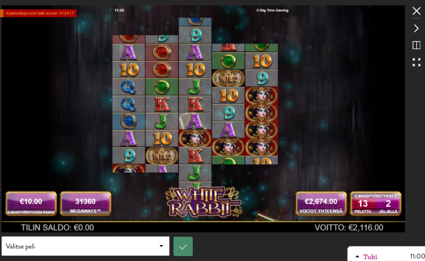 Tadaa! Yllätyitkö, että White Rabbit — slottipeli by the way — on yksi suosituimmista peleistä? Se, missä White Rabbitia Ison Jättipään mukaan pelataan, näkyy alapuolella. Luetteloa täydennetään aika ajoin. Se ei ole täysin erehtymätön, eikä sitä pidä tulkita niin että kyseisessä pelisaitissa pelataan vain tätä, vaan että tämä on suosituimpia pelejä, joita kyseisen cäshinön pelaajat tykkäävät rämpyttää. White Rabbitin lisäksi supersuosittuja pelejä on reilut kolmisen sataa. Niistä kaksi kolmannesta on kolikkopelejä.